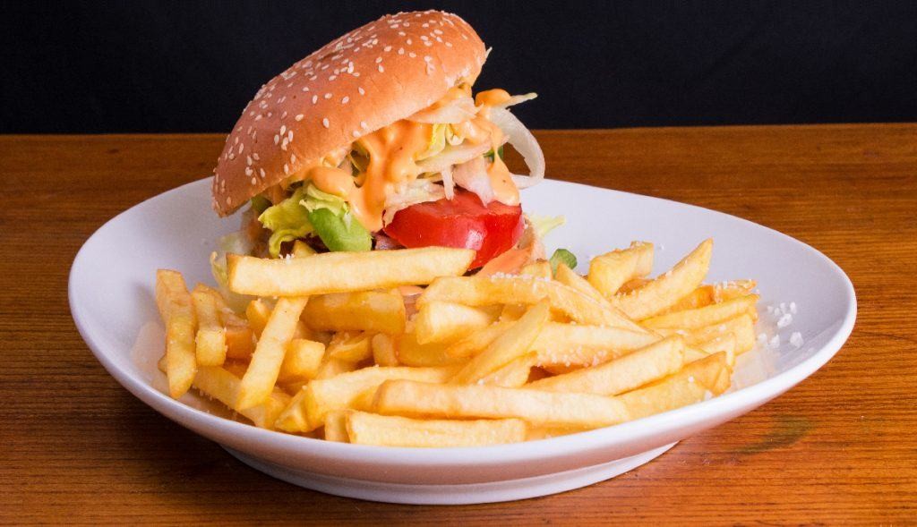 Burgari, salat, tomat, dressing